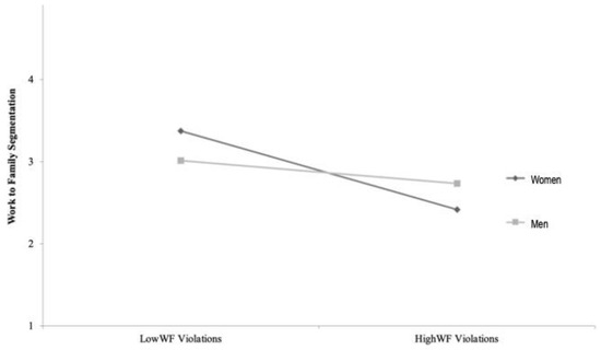 Finally, regarding our moderation hypothesis (H3), the interaction between boundary violations and boundary segmentation behavior was observed to be moderated by gender only in the work-to-family direction. Thus, our H3 (c) and H3 (d) were refuted, as they focus on the family-to-work direction.