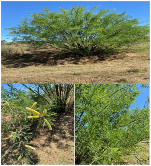Several authors highlighted the adaptability of this species in dry areas with more saline soils unsuitable for cultivation [12,40,41]. For example, Lauenstein et al. [42] stated that Prosopis species, especially flexuosa, grow and develop in a broader range in the flatlands where there is no additional water contribution. This could be linked to moderate plasticity at physiological and xylem anatomical levels and a positive absolute value in key drought tolerance characteristics. According to Villagra et al. [43], some of these species can survive the desert steppe with extremely severe low temperatures during winter times. Prosopis species have a defence mechanism or a system against drought strain, which involves alterations in gas exchange, stomata opening, osmotic adjustment, and leaf area [44]. Prosopis species are extremely tolerating salt [45], e.g., P. juliflora, P. tamarugo, P. laevigata, P. alba, and P. pallida, and can grow in saline soil regimes comparable to seawater [46,47,48].