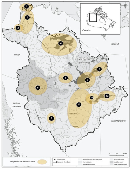 Previous research has highlighted the failures that can come with not listening to local experts; this is particularly well-evidenced in cases where fishers’ knowledge has not been recognized. Examples include the collapse of the North Atlantic cod stocks and the decline of the white sturgeon in the Lower Fraser Basin [20,21]. While much of the research on fishers’ knowledge has been carried out in marine ecosystems [22,23], there is also need for greater monitoring in freshwater ecosystems [24,25,26]. The Mackenzie River Basin in northwestern Canada is among the river systems considered data-poor and at risk [27,28]. Data gaps not only relate to biophysical elements and processes (e.g., changes in water flow, impacts of climate on fish health); there is also little documented about this watershed as a social–ecological system. Given the vital contribution of the Mackenzie and other large watersheds to the livelihoods of local and Indigenous peoples, as well as escalating pressures of climate change and resource development on freshwater resources, addressing these gaps has never been more urgent.