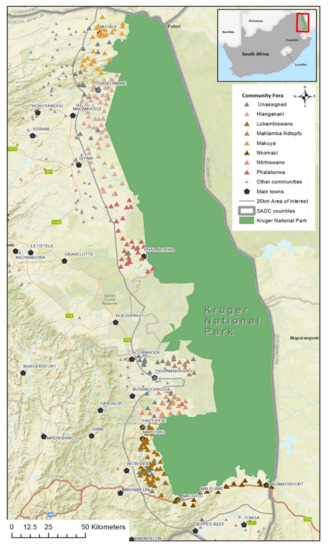 - Anthony, B.P.; Mmethi, H.; Anthony, R. Community fora as vehicles of change? The Hlanganani Forum and Kruger National Park, South Africa. In Principles of Environmental Policy: Local, European and Global Perspectives; Shkaruba, A., Ed.; Pskov State University: Pskov, Russia, 2018; pp. 279–340. [Google Scholar]