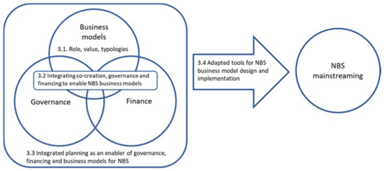 Based on the above methodology, we outline our results within the following selected thematic categories: (1) role, value and typologies of NBS business models; (2) integrated approaches to governance, financing, and co-creation for NBS business models; (3) integrated planning as enabler or barrier for governance and financing contexts framing NBS business models; and (4) tools developed in H2020 for NBS model design, in response to these themes, as conceptualized in Figure 2.