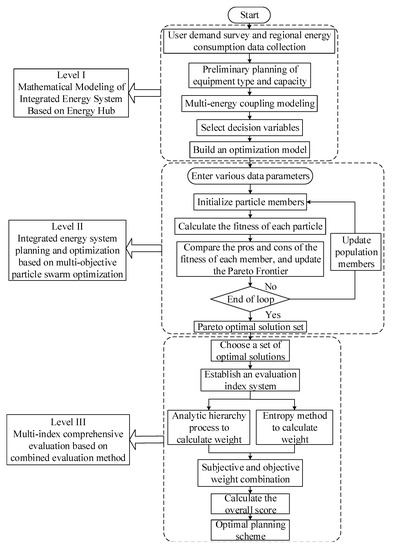 This paper proposes a comprehensive energy system planning optimization method based on multiple factors and a three-level process as shown in Figure 1. The process is as follows: