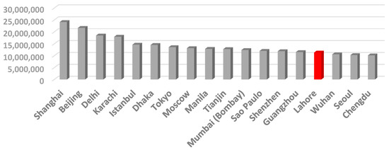 Lahore is a rapidly growing metropolis with marvelous heterogeneity across its nine towns and tehsils and over two hundred union councils (local administrative unit). The city of Lahore has expanded and built on a rich existing base of cultural heritage to create a thriving economic base which is driven by trade, business, industry, and education. It is the second largest city of Pakistan with a population over 11 million inhabitants, as shown in Figure 1 with red color.