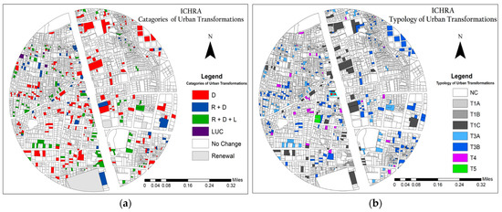 (a) Categories of Urban Transformation around ICHRA Station; (b) Typology of Urban Transformation around ICHRA Station.