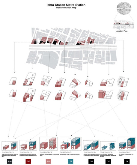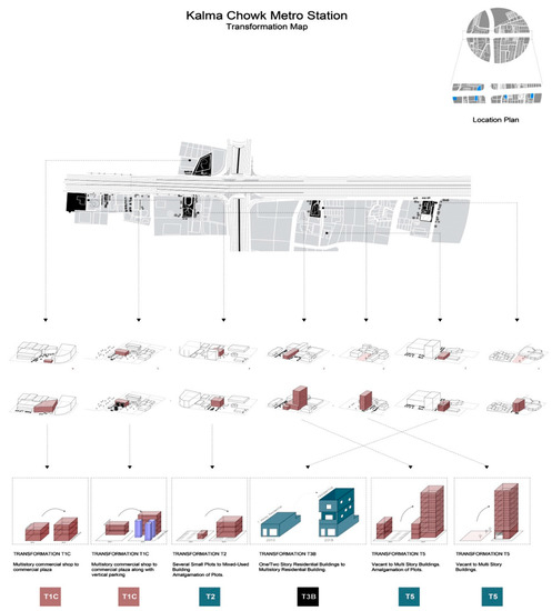 (a) Categories of Urban Transformation around Kalma Chowk Station; (b) Typology of Urban Transformation around Kalma Chowk Station.