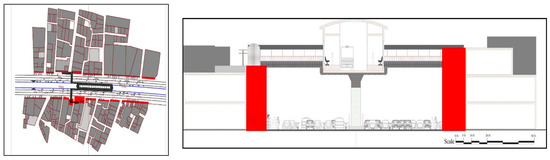 Road Section at ICHRA Metro Station and Demolished Building Space (Red Color).