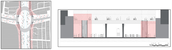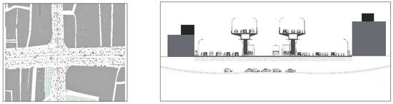 The development of the BRT corridor triggered many redevelopment activities, but it is pertinent to mention that the BRT corridor is not only the sole factor behind these constructions. There are many other market forces. The land parcels surrounding Kalma Chowk are much bigger and more expensive as compared to the land parcels of ICHRA metro station area. The development control of this area is the responsibility of the Lahore Development Authority (LDA). According to the building by laws of LDA, the property line of the buildings cannot coincide with building line which means that building owners have to surrender some land in the form of setbacks in front of their buildings. These setbacks provide clear boundaries between collective spaces and private spaces. The service roads on both sides of the BRT corridor also serves the function of parking. Figure 14 shows the road section of Kalma Chowk after the construction of the BRT corridor. Kalma Chowk metro station area did not face any demolitions for the construction of BRT because the width of right of way (ROW) was already enough for the construction. The distance between two opposite building lines was 68.58 m which accommodated the whole BRT infrastructure.