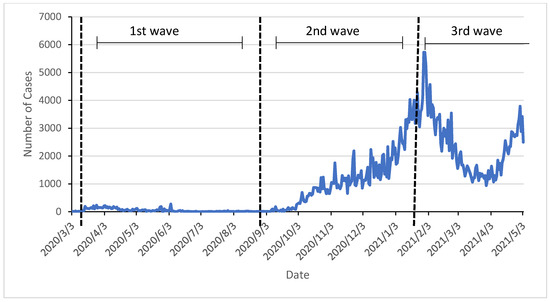 Daily COVID-19 cases from 3 March 2020, to 3 May 2021.