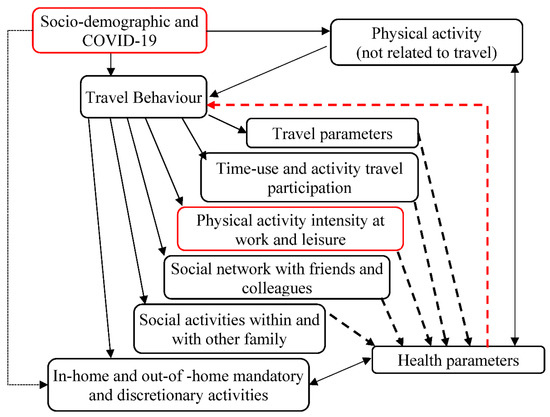 Furthermore, it is very complex to study the influence of activity patterns on health parameters. According to the authors’ view and recent literature, there has not been any study showing the direct relationship between activity and health [28,29,30]. Activity participation is too general a term, and does not directly influence health parameters. Therefore, physical activity intensity during the COVID-19 pandemic is used as an intermediate variable to study the influence of activity patterns on health parameters.