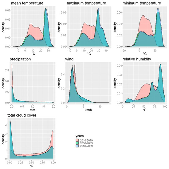 Density plots of climate variables.