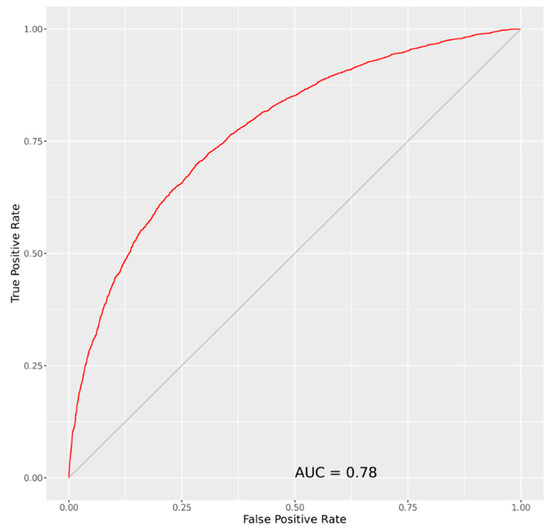The GAM model is suitable for estimating the response relationship between the probability of presence of a wine tourist and the climatic variables. Analysis of the Variance Inflation Factor (VIF, Table 1) shows that there is no multicollinearity among the independent variables, since all VIFs are less than 10 [62]. Table 2 shows the coefficients, standard errors, and significance of the GAM model parameters. All coefficients are significant with a p-value < 0.1 and most with p-value < 0.001. Finally, the AUC of 0.78 shows that the model is an accurate classifier (Figure 4).