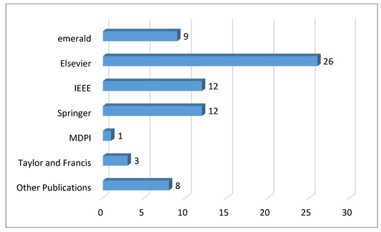 The contribution made by different publishers is analyzed. Elsevier has the maximum number of publications with 26 papers and followed by IEEE and Springer with 12 papers. A summary of this contribution is exposed in Figure 3.
