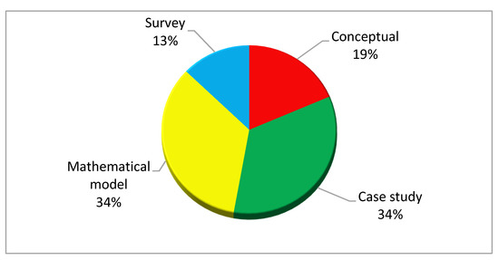 The papers studied in this SLR follow a specific structure to define their objectives and develop a methodology to provide a solution. As the main issue in this study is investigating the impact of I4.0 technologies on procurement, around one-third of identified papers consider a case study or mathematical model to deal with the related issues, which increase the rate of validity and can be applied in real-domain problems. Around 19% of papers considered a conceptual framework which is just a theory and does not contain any mathematical model or case. The least percentage (around 13%) is for papers considering the questionnaire (see Figure 4).