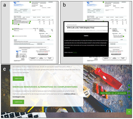 (i) This specific piece of information was accessible only through one of the interactive hotspots embedded in the sample image of an electricity bill (see Figure 4). However, none of the participants understood that the sample bill was an interactive element and therefore kept searching for information about tariffs and cycles throughout the page: “(to one of the researchers) If you hadn’t told me, I would have never selected those green circles on the bill. I thought that was just an image” (C8). The main bottleneck here was a lack of affordances—i.e., properties of an element of the UI which provide a prompt on how to interact with it.
