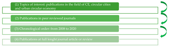 In the early phase, all the relevant circular economy papers published between 2010 and 2020 have been identified in the ISI Web of Science database. We searched for the topics: “circular economy,” “urban circular economy” and “circular cities” in the Web of Science, we analyzed results according to publication years, and we taking into account the characteristics presented in Table 1.