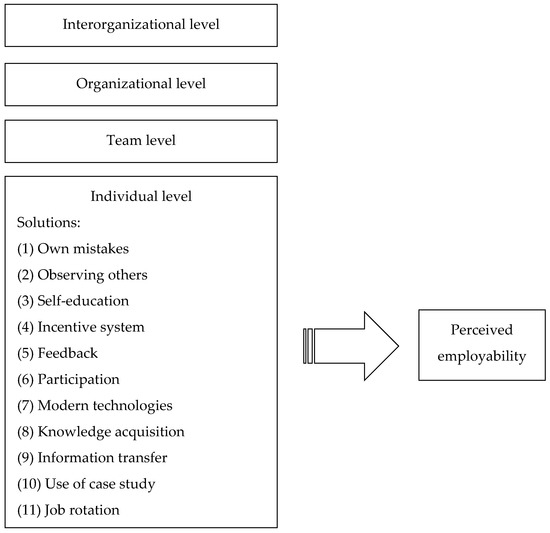 Conceptual model of the individual level of organizational learning in the context of perceived employability based on [15,31].