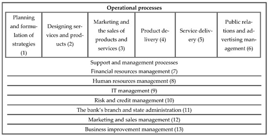 The results of our study were compared with previous studies [41,42,43], which have emphasized the effect of processes of IT management, risk management, and public relations and advertising management on other banking processes. Some other studies (e.g., [44,45]) have emphasized the effect of the risk management process on other banking processes. Yusheng and Ibrahim (2019) showed a significant impact of the product delivery management processes and service delivery management processes [46]. Theodosiou et al. (2012) confirmed a significant impact of the processes of marketing and sales management and public relations and advertising management [47].