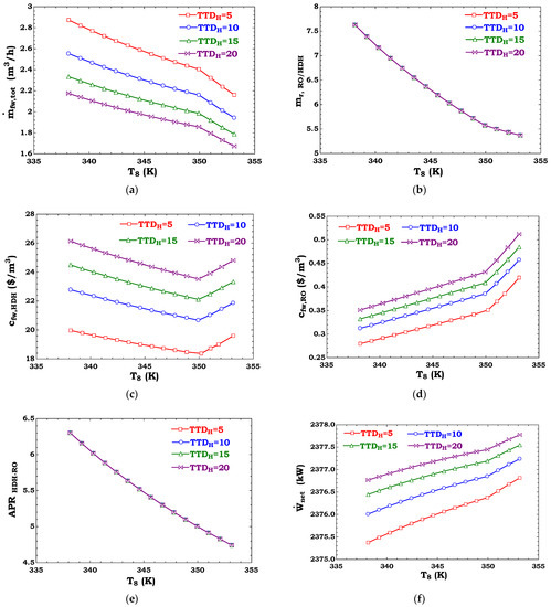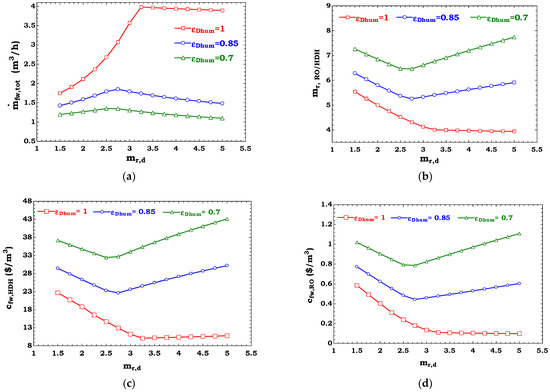The total freshwater rate () is the summation of the water distilled by the HDH and RO units: