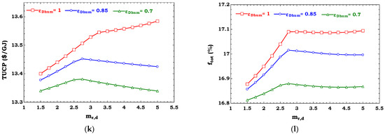 Based on the cost balance equation, the sum of cost rates of the work () and outlet stream () is equal to the sum of cost rates of heat transfer (), inlet stream (), operating and maintenance (), and capital cost (). It should be noted that the sum of the operation and maintenance and capital cost rates are considered as the total cost rate of components [22].