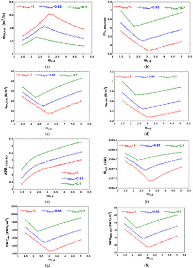 Another important parameter in the hybrid HDH-RO unit is the air productivity ratio (APR) which is defined as follows [30]: