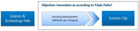 - Bellgardt, F.; Gohlke, J.; Haase, H.; Parzonka, R.; Schicketanz, J. Triple helix and residential development in a science and technology park: The role of intermediaries. Triple Helix 2014, 1, 1–14. [Google Scholar] [CrossRef]