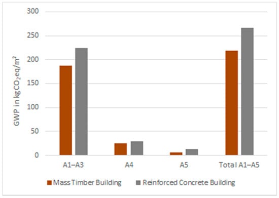 3.2.1. GWP in the Production and Construction Phases (A1–A5)