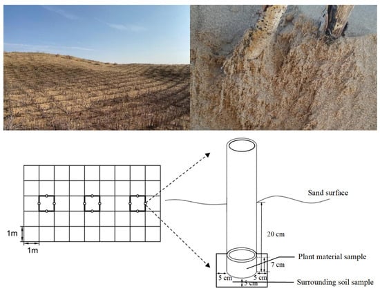 Schematic diagram of Salix psammophila sand barrier sample site.