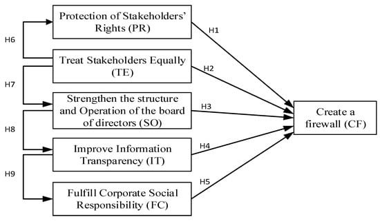 The firewall is a protective strategy, which can be integrated into hardware and software, aimed at protecting private networks from external intrusion and maintaining network security. The setting up of a firewall is described in Section 3, Article 14, of the Corporate Governance Best Practice Principles for TWSE/TPEx Listed Companies, which states that an enterprise should explicitly distinguish its personnel (Hypotheses 1, 2, and 6), assets (Hypotheses 3, 4, 7 and 8), financial goals (Hypotheses 3 and 8), authority (Hypotheses 8 and 9) and responsibility (Hypotheses 5 and 9) for its affiliated companies [7]. An enterprise should execute its risk assessment thoroughly and build an appropriate firewall. Affiliated companies are typically challenging for Taiwan corporate governance practices and are always a focus of interest for shareholders. Therefore, practical principles prohibit managers from working at both listed companies and their affiliated companies concurrently. A parent company and its affiliated companies should not hire the same managers due to problems with benefit transfer [25,26,27,28].