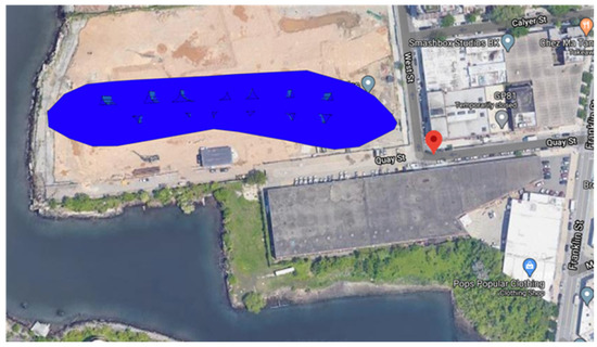 After a detailed search of the New York City map, a site that meets the above criteria was found in at the bank of East River, in Quay St, Brooklyn, NY 11222, USA (Figure 1).