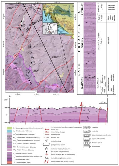 Upper Triassic dolomites are a regionally widespread formation in the Alpine–Carpathian–Dinarides region. Most of this Upper Triassic dolomite succession is occupied by the Main Dolomite Formation (original name is Hauptdolomite [1]). The primary characteristics of the Upper Triassic dolomites are large lateral distribution and large thickness from 300 m up to 3000 m [2,3,4,5,6,7,8,9]. These geological conditions together with significant porosity values result in significant groundwater and geothermal water aquifer potential. Porosity is mainly represented with fracture porosity [3,10,11], but the amount and significance of depositional and diagenetic porosity have not been investigated.