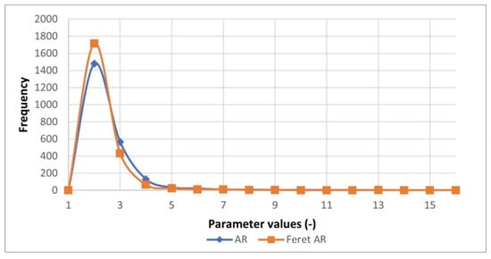 Figure 7. Frequency diagrams for AR and Feret AR.