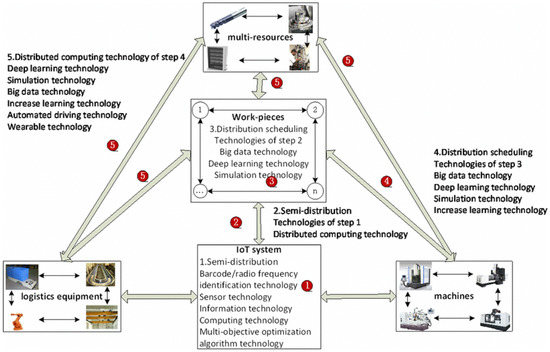 Deep learning, in recent years, has emerged as one of the mainstream subjects in machine learning and artificial intelligence. It applies nonlinear models of complex nature for the representation of the relationship between data [95]. It employs big data for the analysis and determination of end relationships between data. Deep learning applies the first come, first serve rule for scheduling in a job shop. The system, either randomly or by optimization, schedules the preliminary sorting. This sorting, with the deep learning technology, leads to self-determination for each job, whether it adjusts to the queue or not [96]. This practice covers two scenarios for each job. In the first scenario, each job judges the preliminary sorting against its delivery time and, if the delivery time is not met, then the job self-decides to override the sequence to achieve its target. In the second scenario, if the preliminary sorting guarantees the delivery time of the job, the job uses deep learning technology with autonomous decision-making for forecasting efficiency, cost, machine utilization, etc. Deep learning and improved learning techniques enable the system to predict failures. As a preventive measure, it enables the system to issue maintenance instructions, keep a record of machine maintenance, measures the jobs involved in the scheduling, and choose their process resources and orders in response. This self-decision process is realized when there is an information transfer among smart jobs and machines. Automated driving technology based on a combination of deep learning with incremental learning makes the logistics transport resourcing smart. Each vehicle and robot can perceive its environment in real-time, choose the shortest route, and avoid congestion dynamically [97]. This decision-making process is realized when there is an information transfer among smart jobs and smart multi-resources. This predictive model is constantly improved through deep learning and data-driven techniques, where data is obtained from the stimulated machining processes and the actual machining processes.