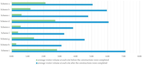 People’s behaviors and activities at the site before and after Scheme b and i were constructed.