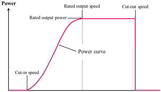 where is the probability distribution of wind speed and is the power curve of wind turbines. The cut-in wind speed is the minimum wind speed at which the turbine blades overcome the friction and begin to rotate. The cut-out wind speed is the speed at which turbine blades stopped rotating to prevent probable damages from high winds. It is notable that not all turbines have a well-defined cut-out speed. The schematic concept of power curve for a wind turbine is presented in Figure 5.