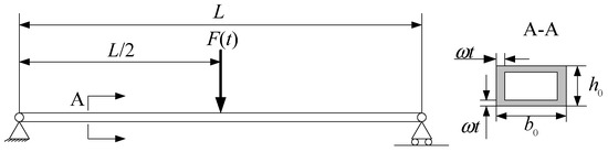 The second example deals with a steel bending beam whose cross section is linearly corroded [6,40]. Two loads are applied to the beam, i.e., dead load and a time-variant load. The dead load is equal to where is the force density of steel, and the pinpoint load F(t) applied at the mid span (Figure 3) is a Gaussian process. The performance function of the corroded beam is: