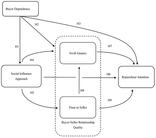 The development of buyer–seller swift guanxi and trust in the seller can reduce uncertainty and improve the experience with exchange parties [40]. Thus, we expect that buyer–seller swift guanxi and trust in the seller lead to repurchase intention [1].