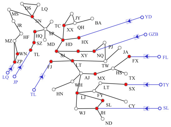 The MIADF values of all nodes are calculated and sorted, and the top 20 nodes (marked in red) are selected as candidate installation areas, as shown in Figure 9.