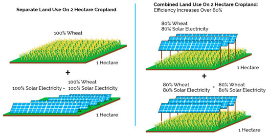 - Makavana, J.M.; Kalaiya, S.V.; Chauhan, P.M.; Dulawat, M.S. Advantage of Agrivoltaics Across the Food-Energy-Water Connection. ACTA Sci. Agric. 2020, 4, 15–17. [Google Scholar]