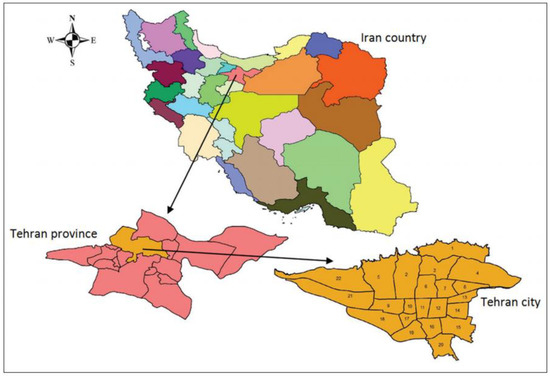 Map of the city of Tehran in the Tehran province, Iran [48].