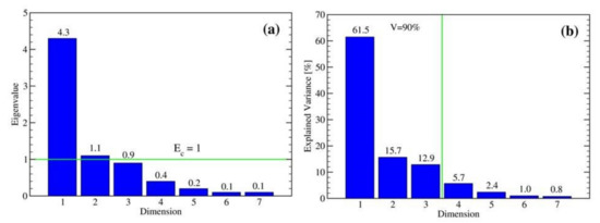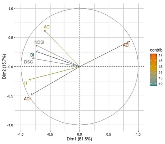 Before analysing the computed eco-acoustic indices, we performed a principal component analysis (PCA) on the input dissimilarity (distances) matrix of order 4312 (616 observations times seven variables) to reduce the number of variables and account for the largest possible variance of the original variables [