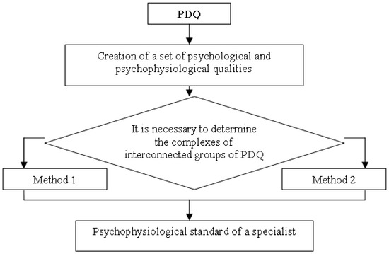 The process of constructing a psychophysiological standard of a professional worker of the ‘man-nature’ type profession can be implemented using one of two methods [32], the choice of which depends on the required degree of research depth of complexes of interconnected groups of PDQ.