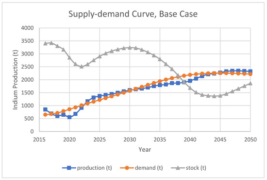 Indium production capacity, base case.