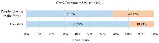 Analysis of the results obtained indicated that, according to the majority of foresters (80.8%) and recreational forest users (67.81%), the effects of climate change are observable in forest areas. However, the distribution of their responses was statistically different (Figure 1).