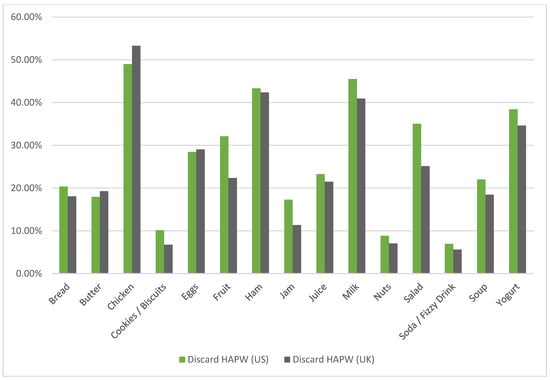 High adjusted probability to waste (HAPW) by food product (control condition).