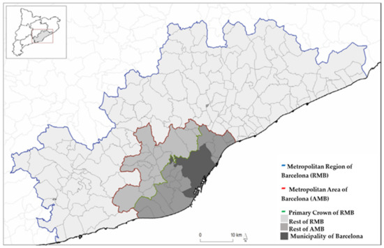 - Territori-Àrea Metropolitana de Barcelona. Available online: https://www.amb.cat/s/web/territori/territori.html (accessed on 21 May 2021).