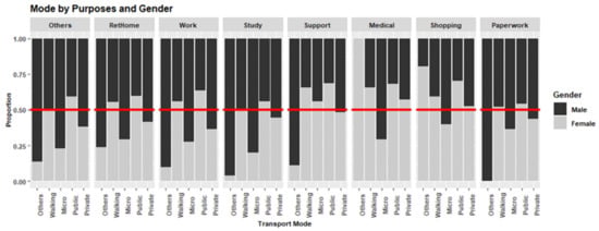 Authors in [42] observe that women travel more for personal issues than for work. A large share of the personal issues trips has to do with unavoidable mobility, which means doctor appointments, escorting, or care mobility. These unavoidable trips increase between women living in lower-income areas.