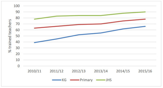 Trends in the percentage of trained teachers in public basic schools [6].