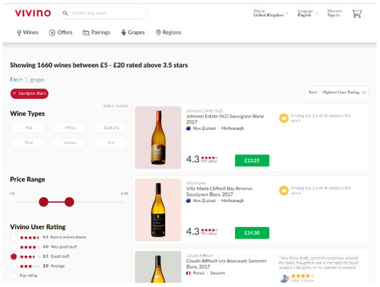 - Vivino. Available online: https://www.vivino.com/ (accessed on 22 May 2021).