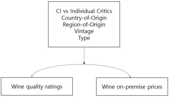 According to the results of literature review, it was found that several variables act as moderators in the relationship between wine quality evaluation and price: evaluation subject, such as CI or individual, country-of-origin, region-of-origin, vintage, and wine type (Figure 6).