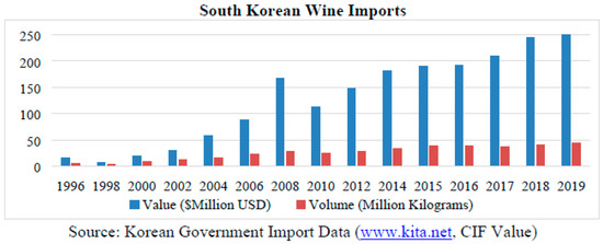 Although the Korean wine market is in the early stage of development, it has been growing significantly since 2016 (Figure 8). Consumer lifestyles and tastes continue to evolve as Koreans are further exposed to international themes, and demand for wine and knowledge of wine has been increased. With this market environment, consumers become interested in more information on wine, not only from local information sources, but also from international sources throughout global wine expert platforms. Besides Parker, there are worldwide renowned individual wine experts who have their own wine quality rating system, and market players and consumers in Korea market consider the scores in choosing wines to buy. Additionally, Korean consumers have noticed and informed that there are many other influential CI platforms, which makes consumers open their eyes to obtain qualified information on wines. The results of this study show CI has a similar influence on the prices of the on-premise market as Parker’s points, traditionally regarded as the most influential guideline on wine price.